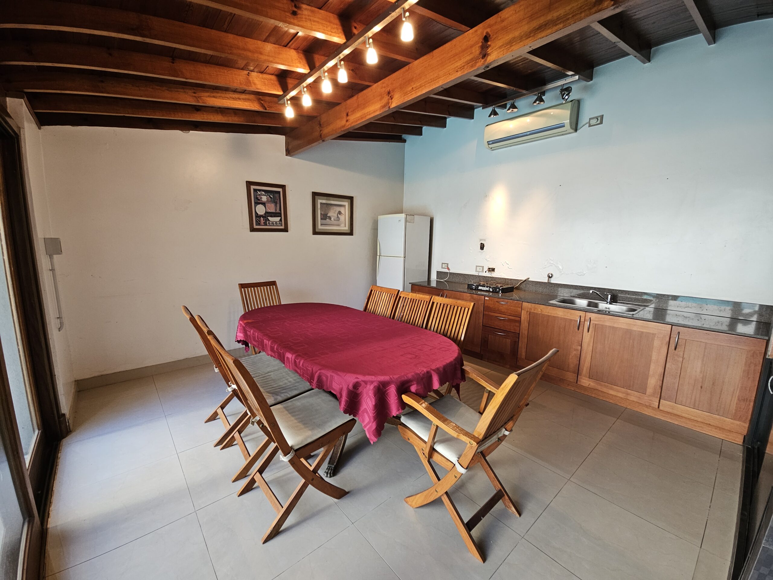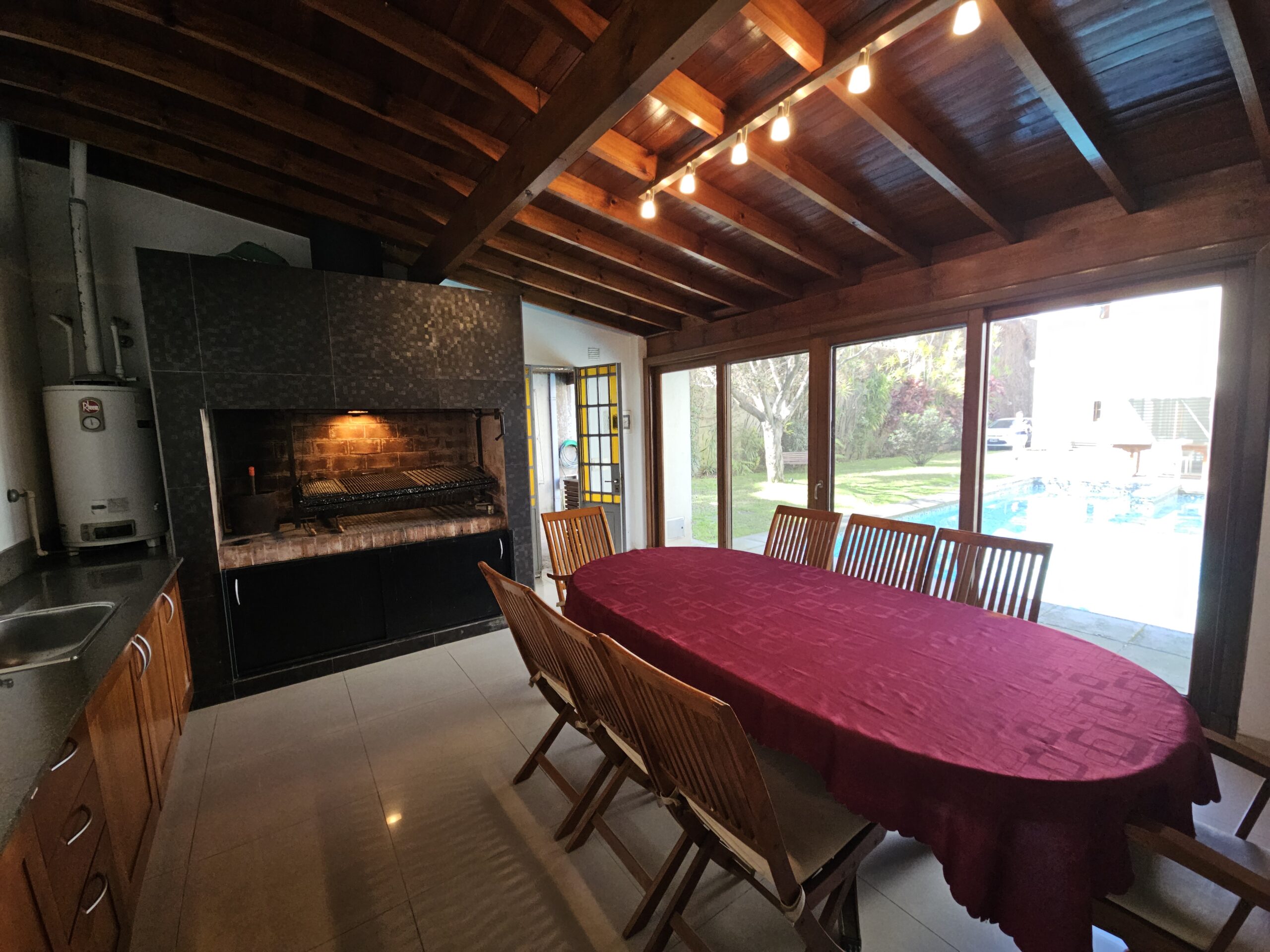 Quincho con parrilla, mesada, anafe a gas, termotanque propio y split frío/calor