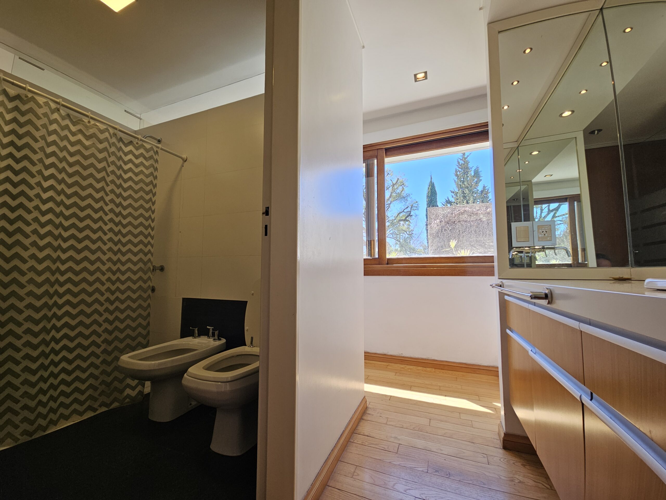 Con un frente de 12 x 42 m , retirado de línea oficial con jardin al frente y entrada de auto pasante para varios vehículos, se ingresa a la casa por un hall de recepción, un escritorio o dormitorio en planta baja al frente, el estar comedor principal, la cocina comedor diario con amplias vistas al parque, el lavadero cubierto, la piscina con jacuzzi, el quincho con parrilla y baño completo con ducha para el sector pileta y lindero al quincho un ambiente mas que puede utilizarse como taller de hobbies.